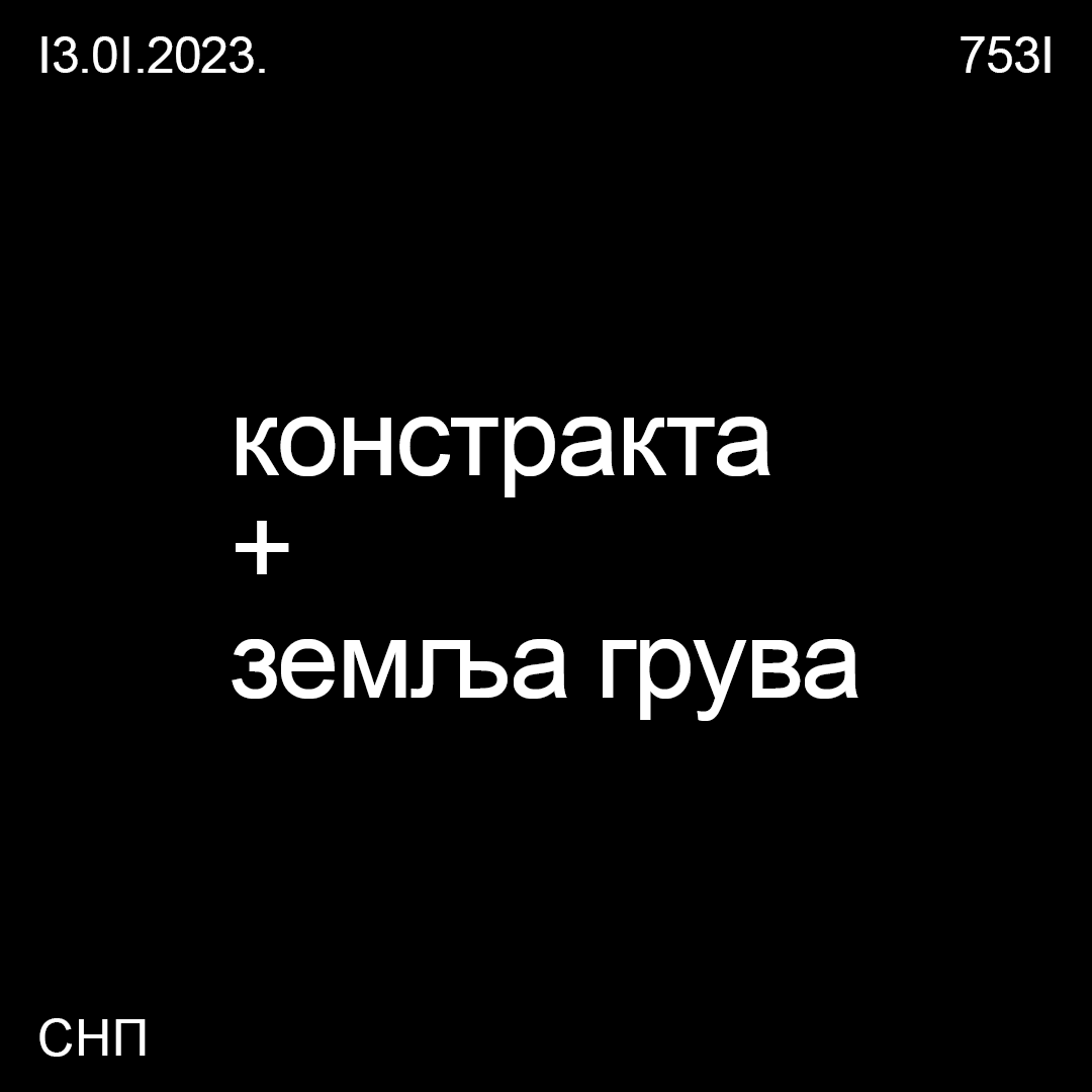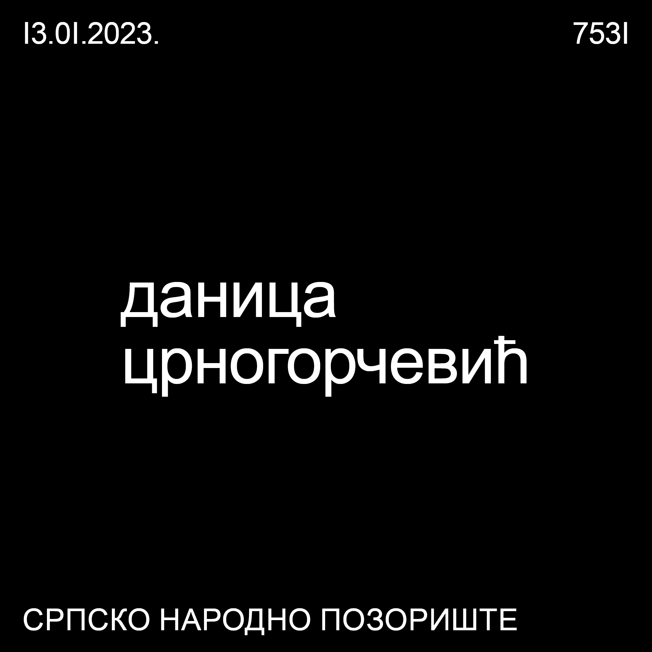 Na velikoj sceni Srpskog narodnog pozorište Jovan Đorđević, 13. januara od 19 časova, nastupiće Danica Crnogorčević, najveća regionalna zvezda duhovne i etno muzike, zajedno sa vizuelnim umetnikom Petrom Bilbijom, koji će njen nastup upotpuniti svojim video-radovima. Od 23 časa na istoj sceni će nastupiti Konstrakta & Zemlja gruva. Nakon što je osvojila Evropu, oborila rekorde slušanosti, opčinila neposrednošću, Konstrakta stiže da zajedno budemo zdravi i proslavimo 7531. godinu.
